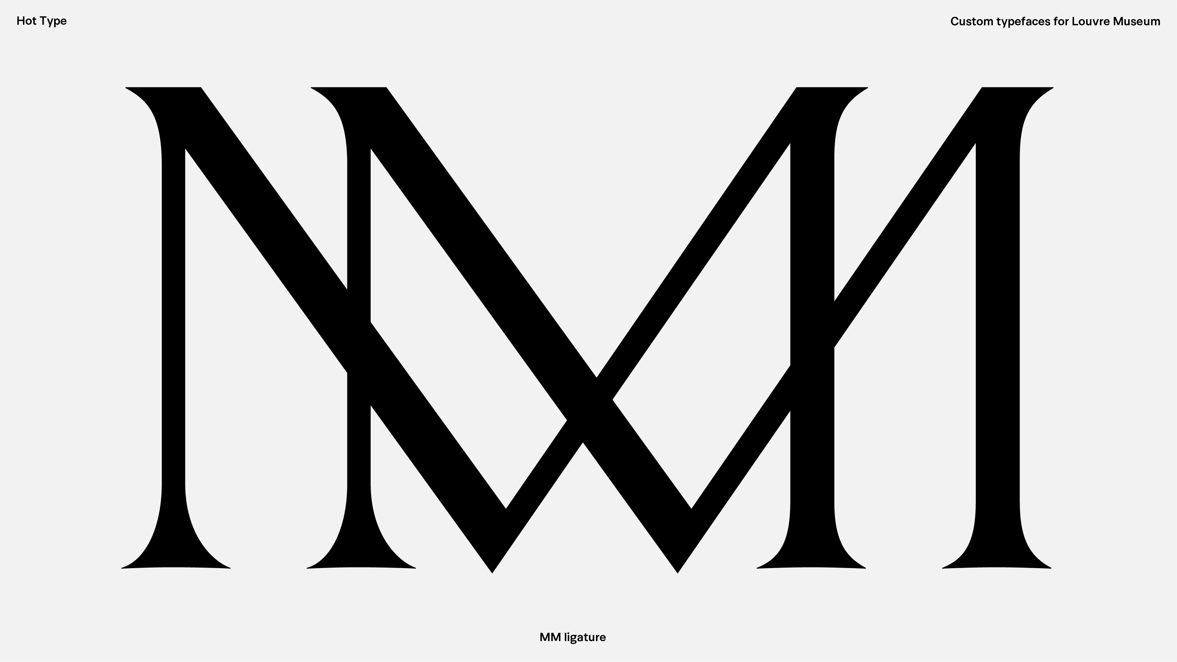 Inclusion of ligatures into the typefaces follows the general storyline of Roman capitals interpretation. Ancient stone cutters very likely used this nifty technique of merging multiple characters to save the line space and create a pleasing copy fit. Taking into account complexity of specific combinations, similar logic that was applied to differentiate between Sans and Serif designs, was used for designing ligatures. Louvre Sans, a more clean and open typeface, called for ligatures of the same nature - less complex, clean connection points and spatious stacking. On the other hand, Louvre Serif allows for overlapping letter combinations due to it’s high contrast.