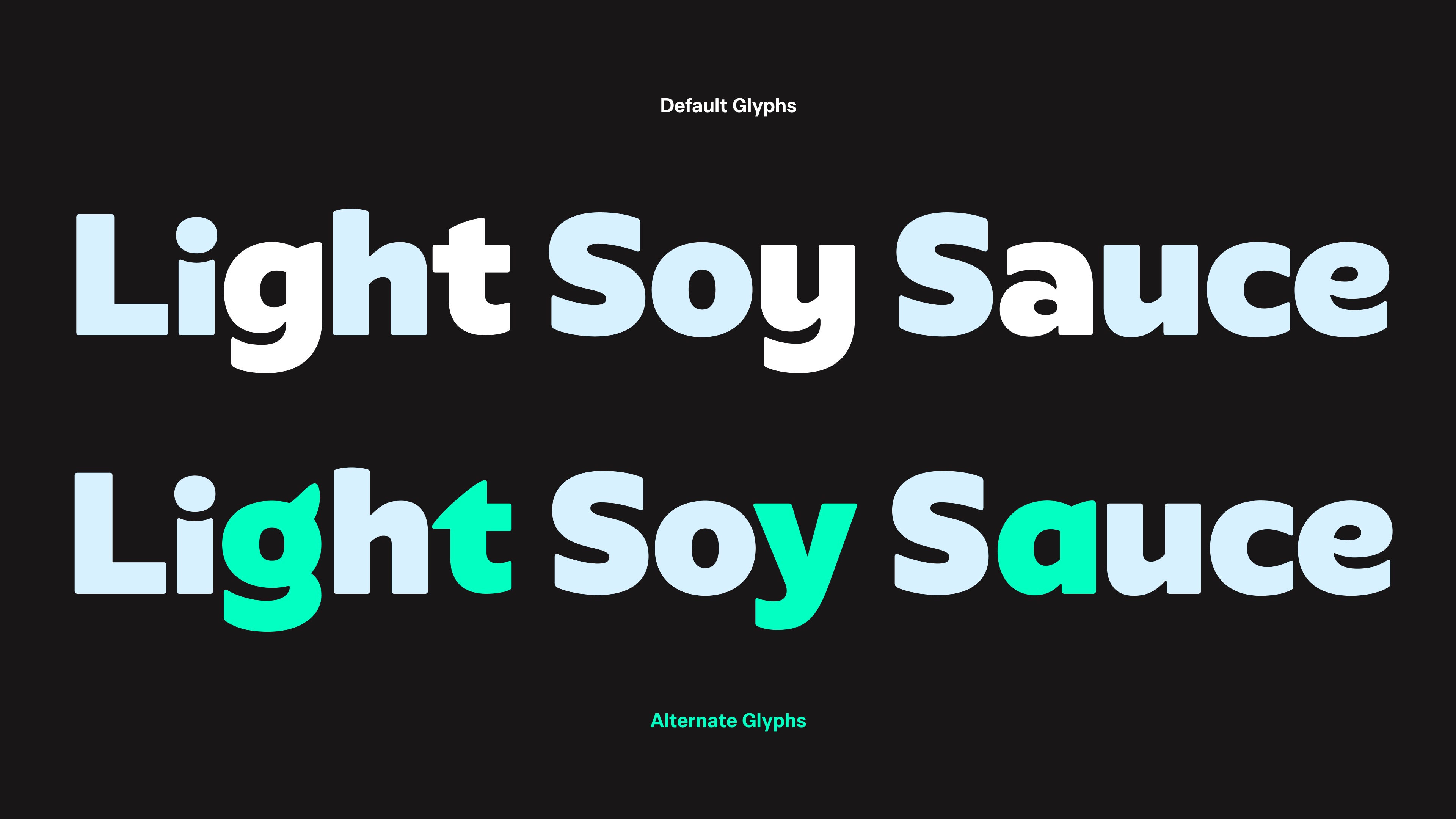 Even though wider overall proportions and generally low contrast might trick you into thinking it's a geometric sans typeface, design of Yazio Sans is based on a humanist construction and stroke logic. The "Good Dopamine" mantra is achieved with heavy weight, rounded inner and outer corners and paying attention to negative spaces. Inside some of the letters one can find hidden claw and horn shapes, while curve tension resembles the Yettie character.